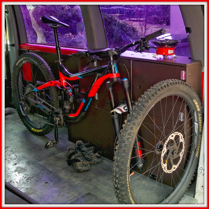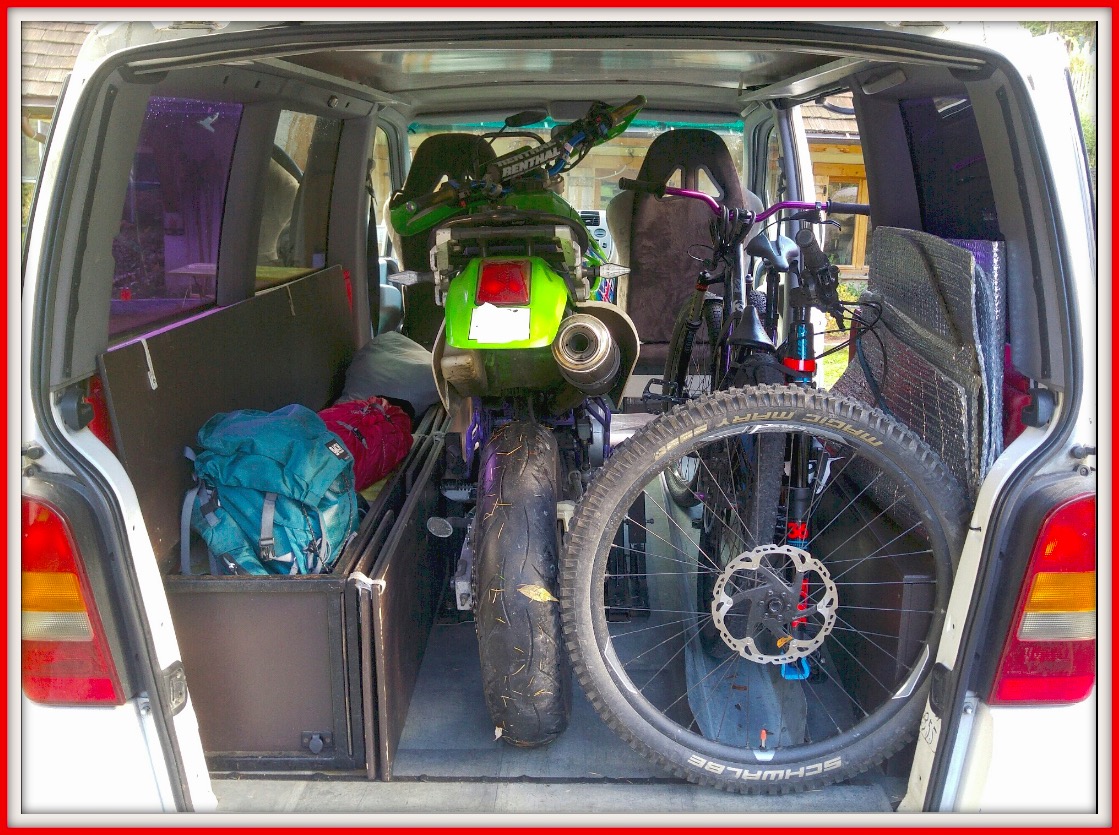My van design was thought out to hold in position my sport equipment, mostly my mountain bike, my motorbike and my snowboard. Therefore those accessories protect both my van design and my sport equipment!